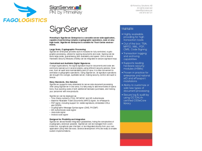 5. Fago Logistics – Dịch vụ xin giấy phép MMDS PrimeKey SignServer Hardware Appliance chuyên nghiệp